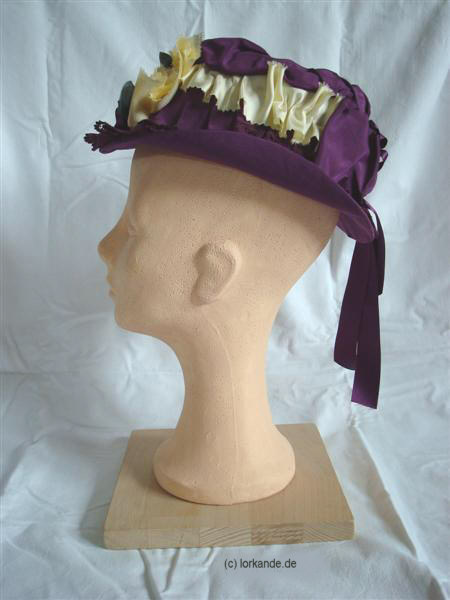 Kleiner Hut aus gleicher Seide mit Seidengarnitur