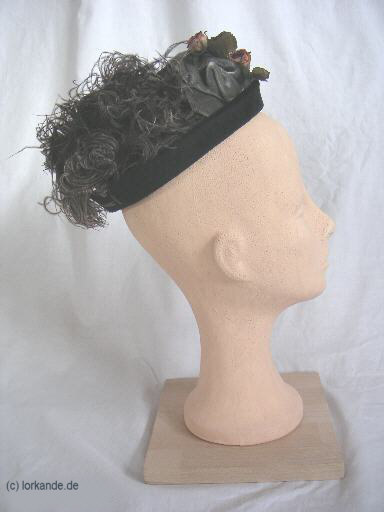Samthut mit kleinen Straußenfeder, Samtband und kleinen Blumen