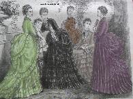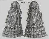 | Gesellschaftskleid | Ballkleider | Promenaden- und Ballkleider (nachkoloriert nach Beschreibung) |
