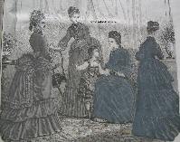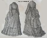 | Poult-de-soie | v.l.n.r. Foulard-Japonais (Vorder- und Rückansicht), Überkleid "Louis XIII", poult-de-soire (V. und R.ansicht) | Dolman Elastine (V. & R.) Paletot Samt (V. & R.) Seidenreps/Kaschmir (V.&R.) |