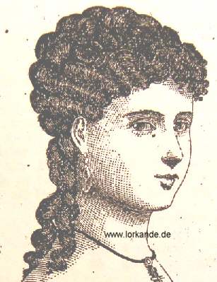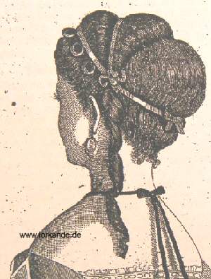 und aufgesteckte Locken consumiren das Hinterhaar. Eine Locke fällt aus