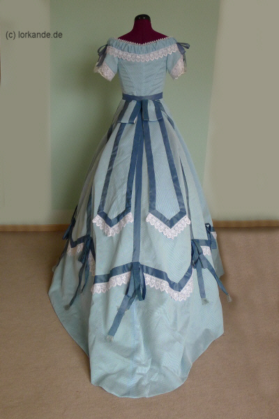 Ballkleid aus gestreiftem Seidenorganza, 1866