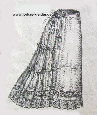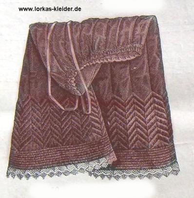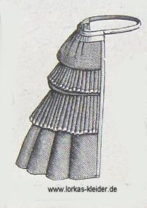 rechts: Unterrock aus Tuch, Umfang 212 cm, Garnitur aus Plissee und mattblauem Passepoil