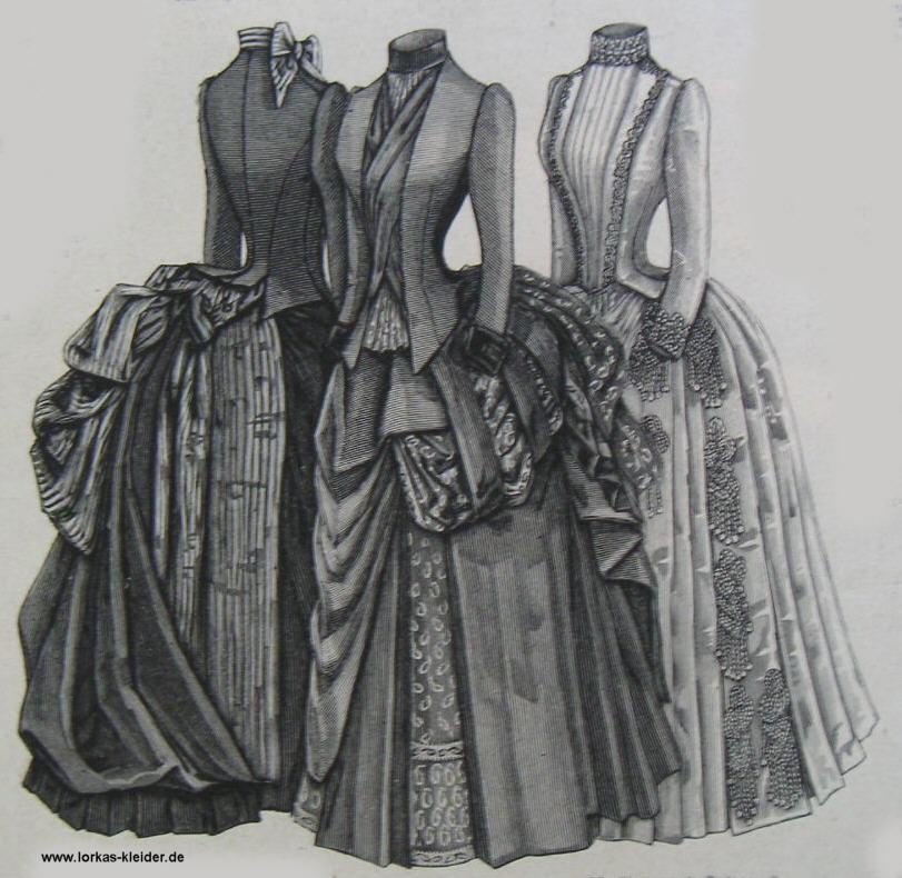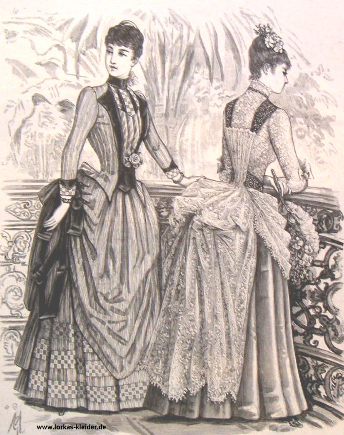 | Gesellschaftskleider | Tagekleider | Promenaden-/Hauskleid | Promenadenkleider | Anzug mit Überkleid |