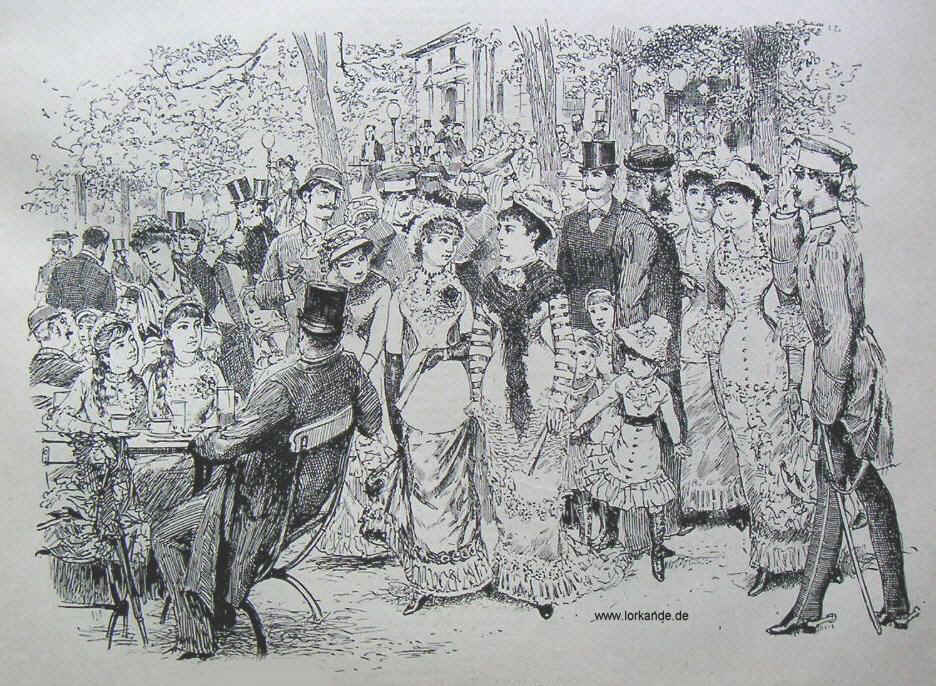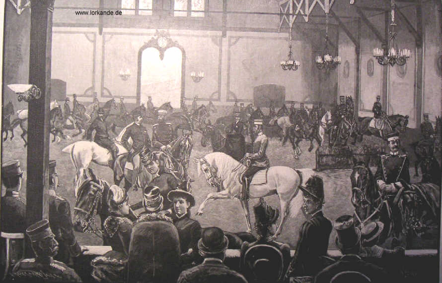 Im Tattersall zu Berlin, 1886 - Sehen und gesehen werden. Und eine gute Gelegenheit für junge Damen, dem galanten Offizier von und zu nochmal zufällig zu begegnen. |