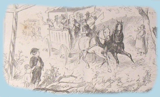 zwischen jenem und diesen zu keinem intimeren werden lassen! Endlich kommen "Kanzleiraths" mit dem Kremser dahergerasselt, der auf den ersten Anblick allerhöchstens noch Platz für eine Dame zu bieten scheint, in dem aber nach Verlauf weniger Minuten und vieler Seufzer die gesamte Niesemeischelie denn untergebracht wird. |