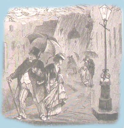 ist leider nicht die Rede. Um unseren verehrten Leserinnen durch die Mittheilung aller trüben Einzelheiten nicht allzusehr an´s Herz zu greifen, begnügen wir uns mit der Beleuchtung der Situation in der neunten Abendstunde, in der die Rückfahrt stattfindet: Finsterniß; der Regen gießt in Strömen, - ohne Rücksicht auf die leichte Chauffure der Damen im Allgemeinen und auf den neuen Strohhut der Frau Kanzleiräthin im Speciellen. Fräulein Kathinka Niesemeischel und Fräulein Bertha Purzel, des Kanzleiraths einziges Töchterlein, haben sich in Folge eines kleinen Disputes über irgend etwas einstweilen ewige Feindschaft geschworen; der Kanzleirath Purzel sucht seinen heulenden Stammhalter, der sich durch den übermäßige Genuß von Obstkuchen eine Indegestion zu gezogen hat, zu beruhigen, und Fräulein Eveline sitzt in stummem Sinnen in einer Wagen-Ecke, und die leisen Seufzer, welche sich bisweilen über ihre küssenswerthen Lippen stehlen, scheinen keineswegs auf einen rosigen Gemüthszustand hinzudeuten; - freilich ,es gibt auch Seufzer der Seligkeit! - Verhältnismäßig am heitersten ist noch die Stimmung Papa Niesemeischels´s, dessen Beziehungen zu der Maibowle im Laufe des Tages in der That rührend freundschaftliche geworden sind.
