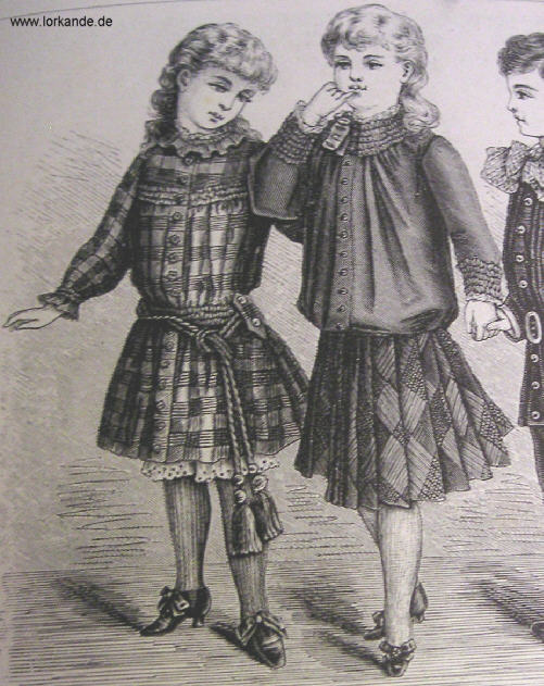 Der Schuh ist mit einer Schleife aus schwarzem Seidenrips verziert, welche auf einem sehr groben, leimversteiften Gewebe aufgeklebt ist. | Diese Schuhart findet sich durch die gesamten 80er Jahre des 19. Jahrhunderts als Standardschuh neben Stiefeln bei der Fußbekleidung von Mädchen wieder. |