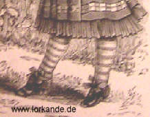 sicherlich und ebenso Ringel in allen Breiten. Mädchen trugen Ringelstrümpfe gemäß den Modekupfern bis ungefähr zum 10. Lebensjahr. |
