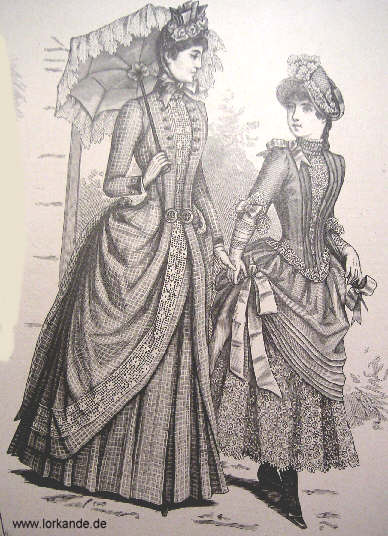 Inwieweit das Kinderkorsett zur Herausbildung einer besonders schlanken Taille genutzt wurde bleibt in meinen Augen offen. Es gibt durchaus Modekupfer, auf denen bereits sehr junge Mädchen auffällig - weil unnatürlich - tailliert sind. Allerdings zeigen die Modekupfer auch Frauen mit Schuhgröße 25, die Abbildungen sind also immer etwas verklärt. Daß Kampfschnüren unter jungen Mädchen und Backfischen schon seitens der schulischen Einrichtungen verbreitet gewesen sein soll halte ich für ein Märchen aus 1001 Nacht oder von 1001 Fetischisten. Wahr ist aber wohl schon, daß die Mädchen von klein auf gewohnt waren, versteifte Oberbekleidung zu tragen, auch ein moderater Schnüreffekt wird relativ früh angewöhnt worden sein. Wie jeder gründerzeitliche Mensch wußte, waren Frauen schwach, sie bedurften der Stütze in der Bekleidung. Somit war für jeden - bis auf einige Reformquerulanten - folgerichtig, daß auch junge, schwache Frauen, bereits einer Haltungshilfe bedurften. Und weil das so normal war fanden es die Mädchen sicherlich völlig selbstverständlich, ein Korsett zu tragen. Ich nehme sogar an, daß das erste Korsett sehr wichtig war in der Entwicklung zur Frau. So wie heutige Mädchen gerne möglichst früh einen BH tragen möchten, selbst, wenn sie ihn noch gar nicht brauchen, wollten damalige Mädchen ein Korsett. Es steht aber nirgendwo geschrieben, daß dieses Korsett wie ein Panzer mit Fischbein vollgestopft oder bis zur Ohnmacht geschnürt werden mußte.