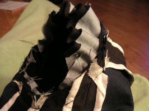 Der Armausschnitt wurde mit einer Paspel versehen, wie