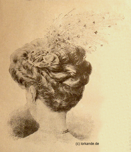 Coiffure für die Soiree aus La Mode Illustrée, Januar 1908 Nachdem man die Haare in Wellen