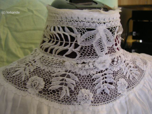 Bluse gefertigt. Sie bestehen aus Bändchenspitze. Der Kragen ist dabei