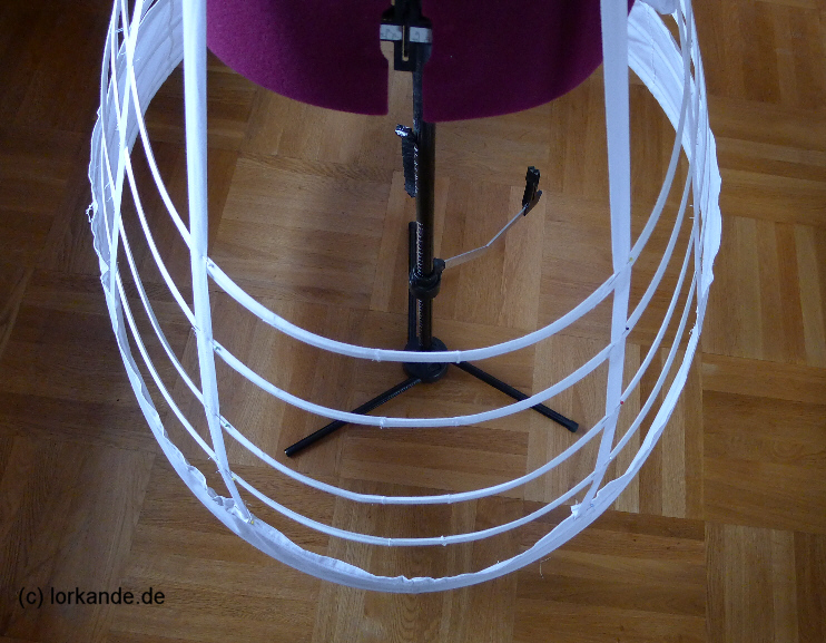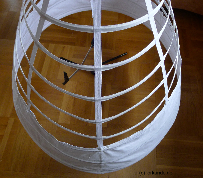 Mein Konzept "Krinoline kommt, Stoff drüberwerfen, alles tackern, schnell fertig" wurde schon mit der Krinoline im Keim erstickt, denn sie tat nicht, wie sie soll: sie war nicht elliptisch. Was nicht an der Produzentin lag, sondern an der Konstruktion. |