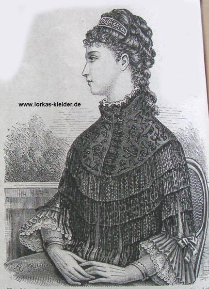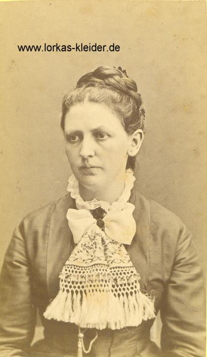 Schleifen endet. Der Kragen aus schwarzem Satin. Der Fichu wird mit