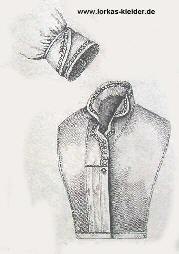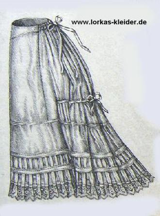 rechts: Unterrock aus Tuch, Umfang 212 cm, Garnitur aus Plissee und mattblauem Passepoil